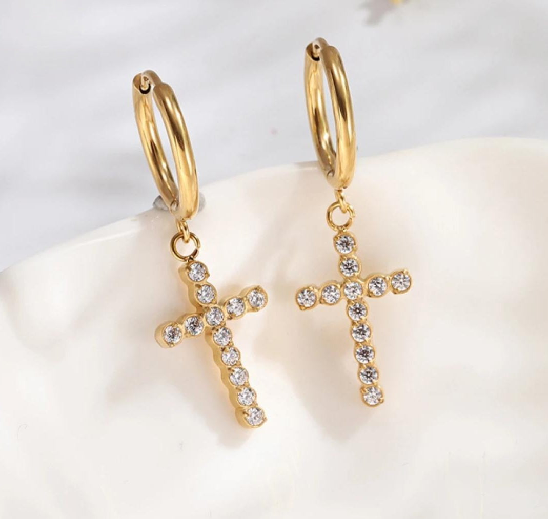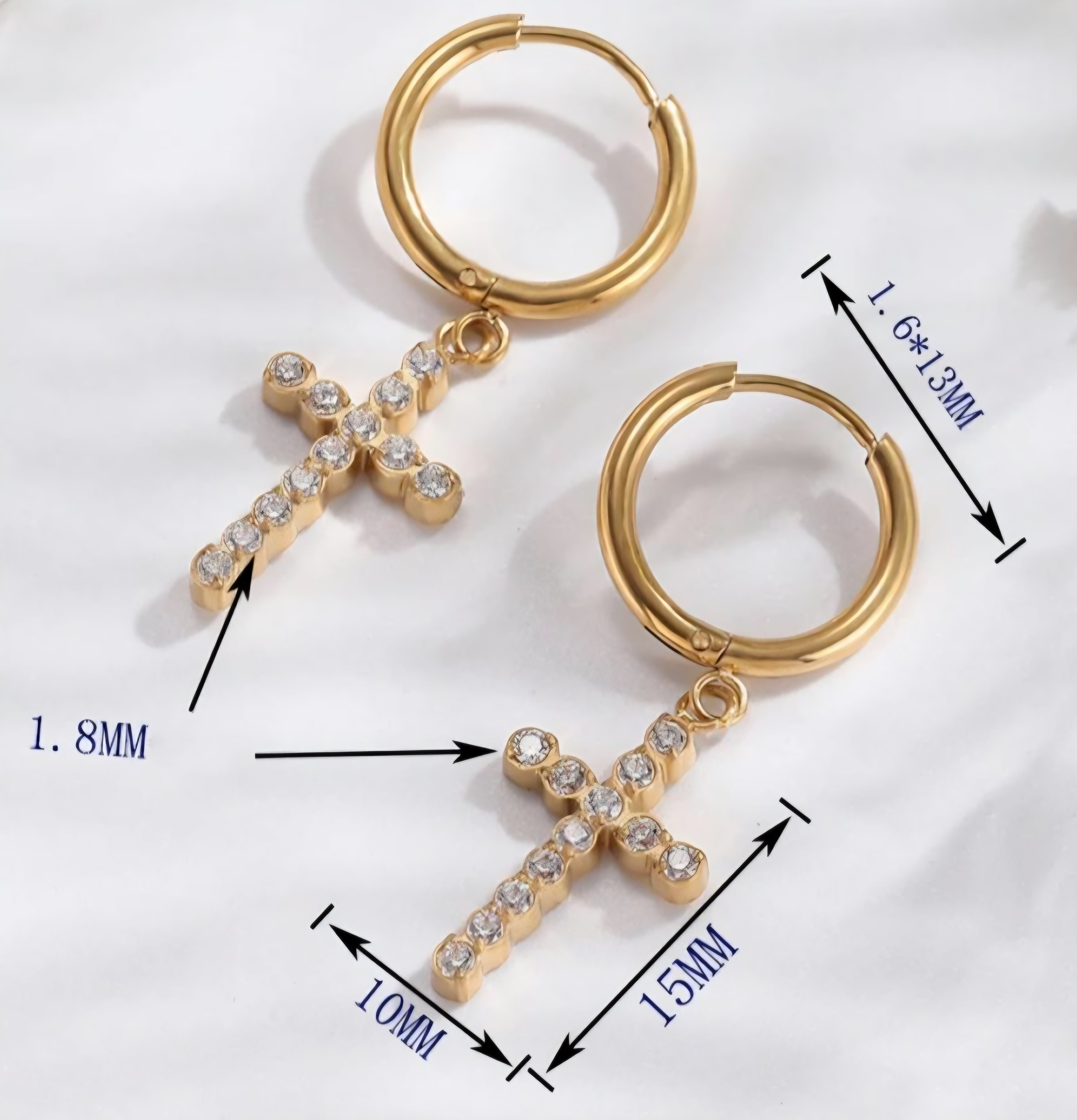Their circular form speaks of eternity, the unending love and faithfulness of God, while the cross at their heart declares the triumph of redemption. Every glimmer from these earrings reflects the light of Christ that now dwells within you, calling you to shine with courage, compassion, and unwavering hope.