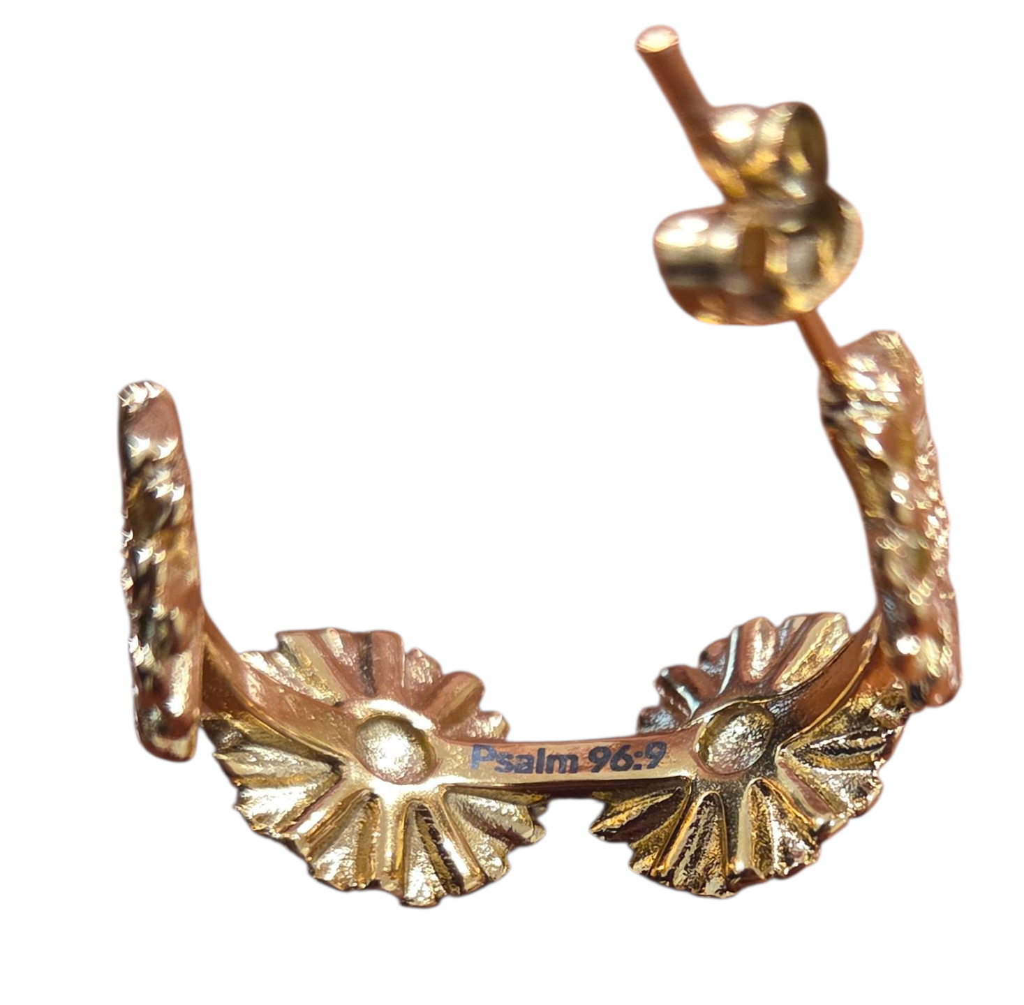 The Beauty of Holiness Earrings are a sacred reminder of the divine beauty and purity that flows from God’s presence. Their elegant gold floral design reflects the splendor of creation and the sacred adornment of a life rooted in Him, a gentle symbol of grace, holiness, and the flourishing of the soul.