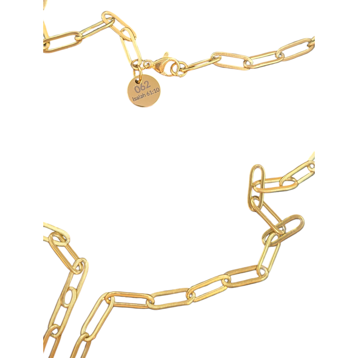 As you wear this necklace, may you be reminded of the chain of righteousness that binds you to your faith, guiding you to walk in the light of God's truth. May the links of this chain symbolize the unbreakable bond between your heart and the heart of God, empowering you to live a life of integrity, compassion, and devotion.