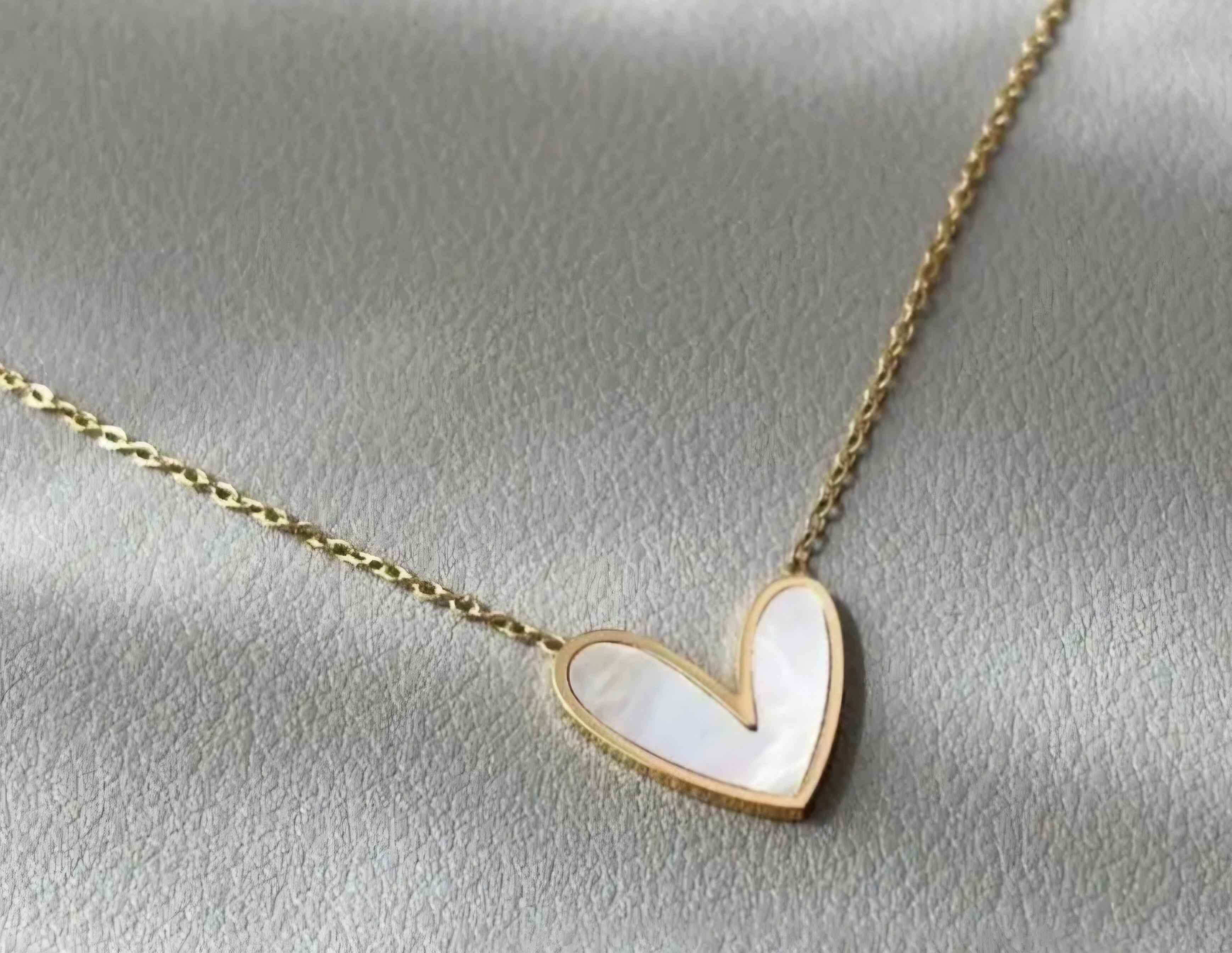 The New Heart Necklace features a pearly white heart, a reminder that God cleanses us and makes us pure and clean, as white as snow.