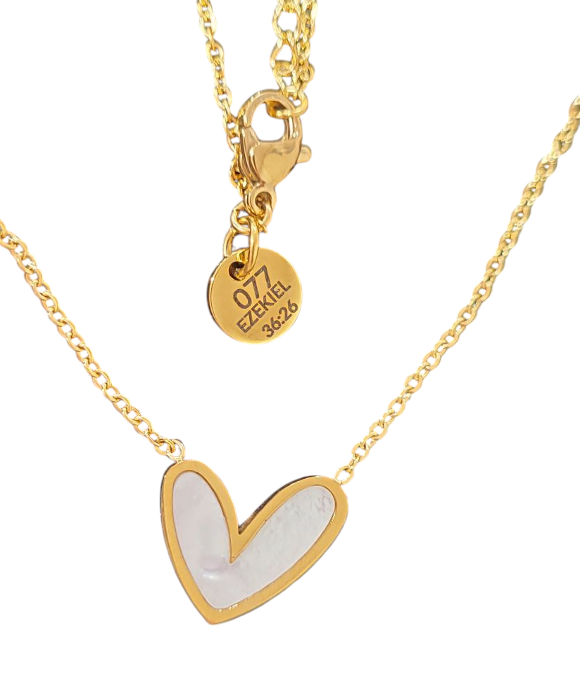 The New Heart Necklace is a beautiful reminder of God's promise to give us a new heart, inspired by Ezekiel 36:26, which says, "I will give you a new heart and put a new spirit in you; I will remove from you your heart of stone and give you a heart of flesh." This scripture reminds us that God is able to transform our hearts and give us a new spirit, enabling us to live a life that honors Him.