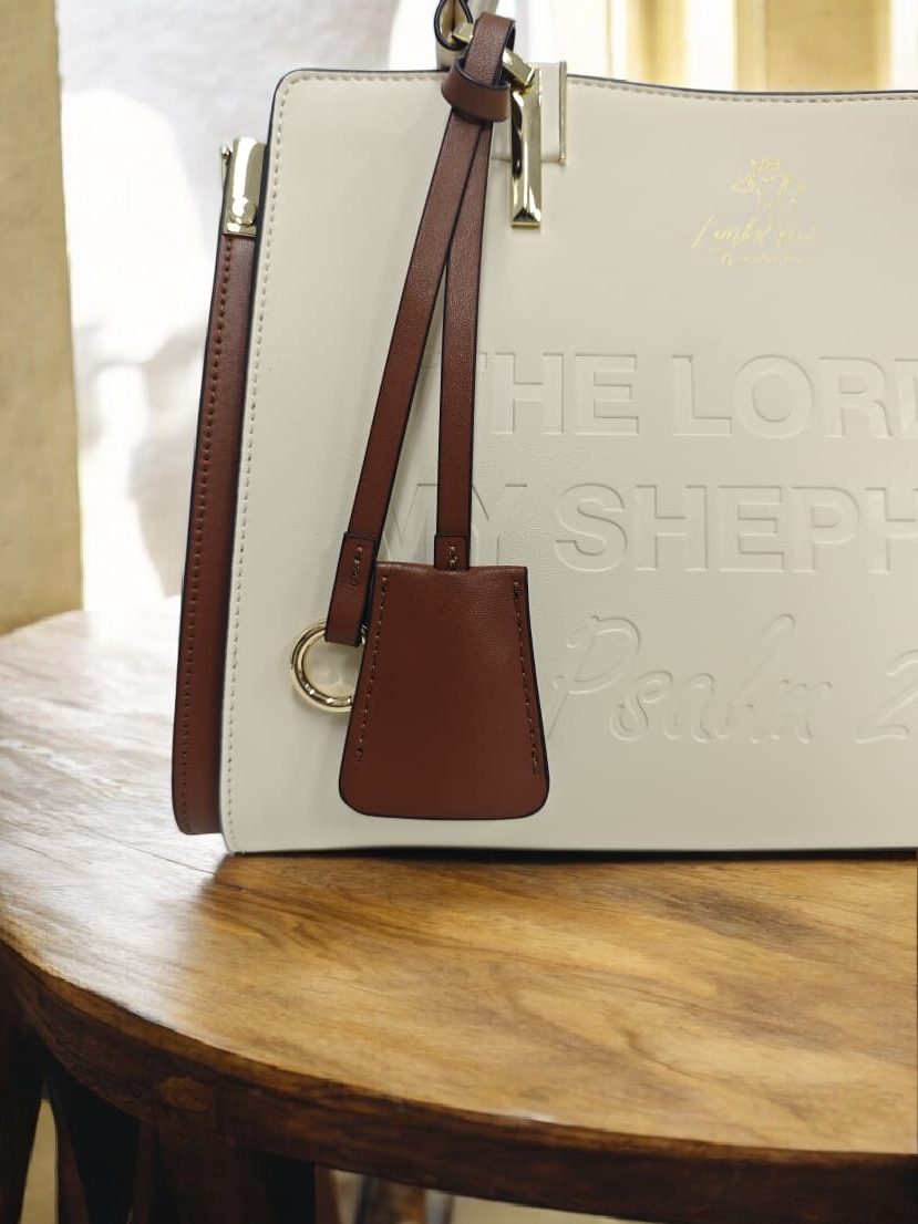 Embossed with the words The Lord is my shepherd, this handbag speaks to the heart of rescue and care. It is a reminder that you are never navigating life alone, never unseen, and never unprotected. Just as a shepherd seeks, guides, and carries his sheep, this scripture declares that your life is led by God’s hand, not by chance or fear.