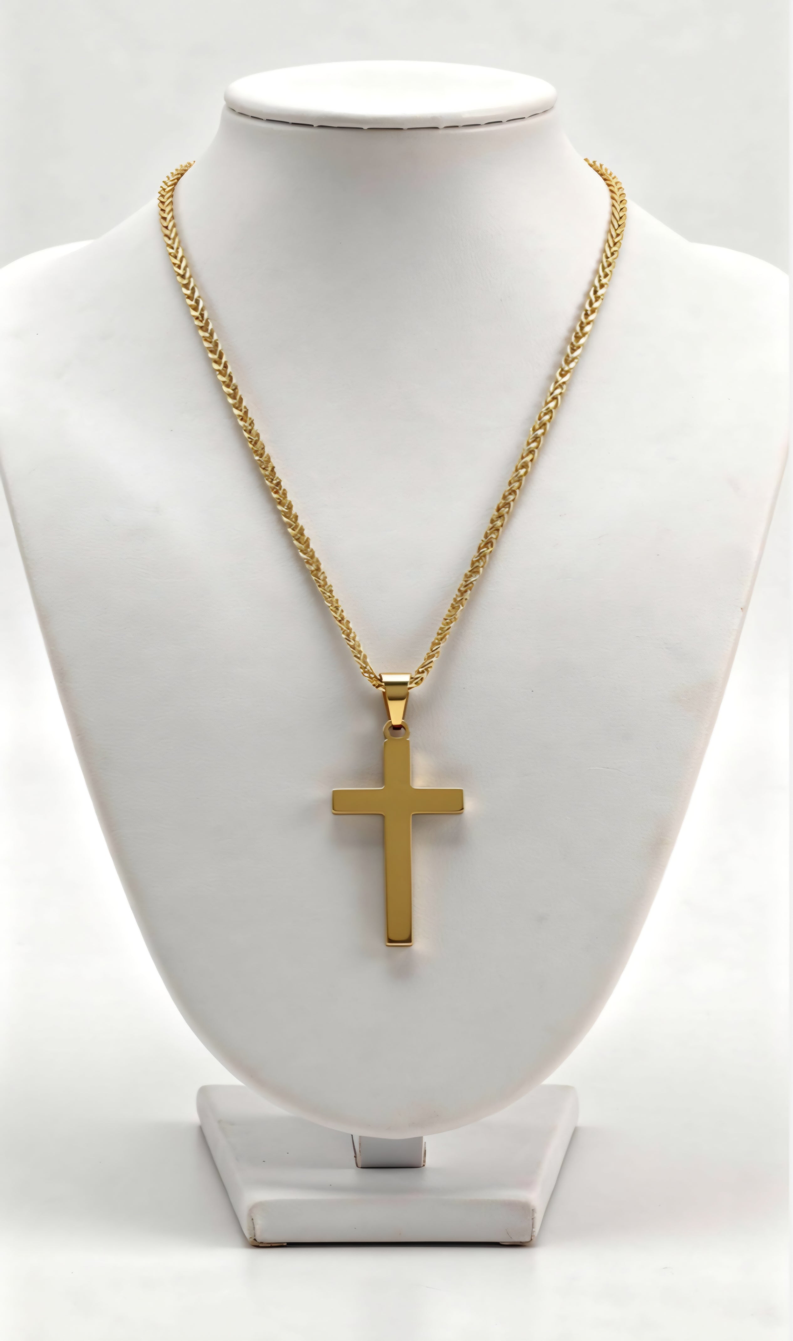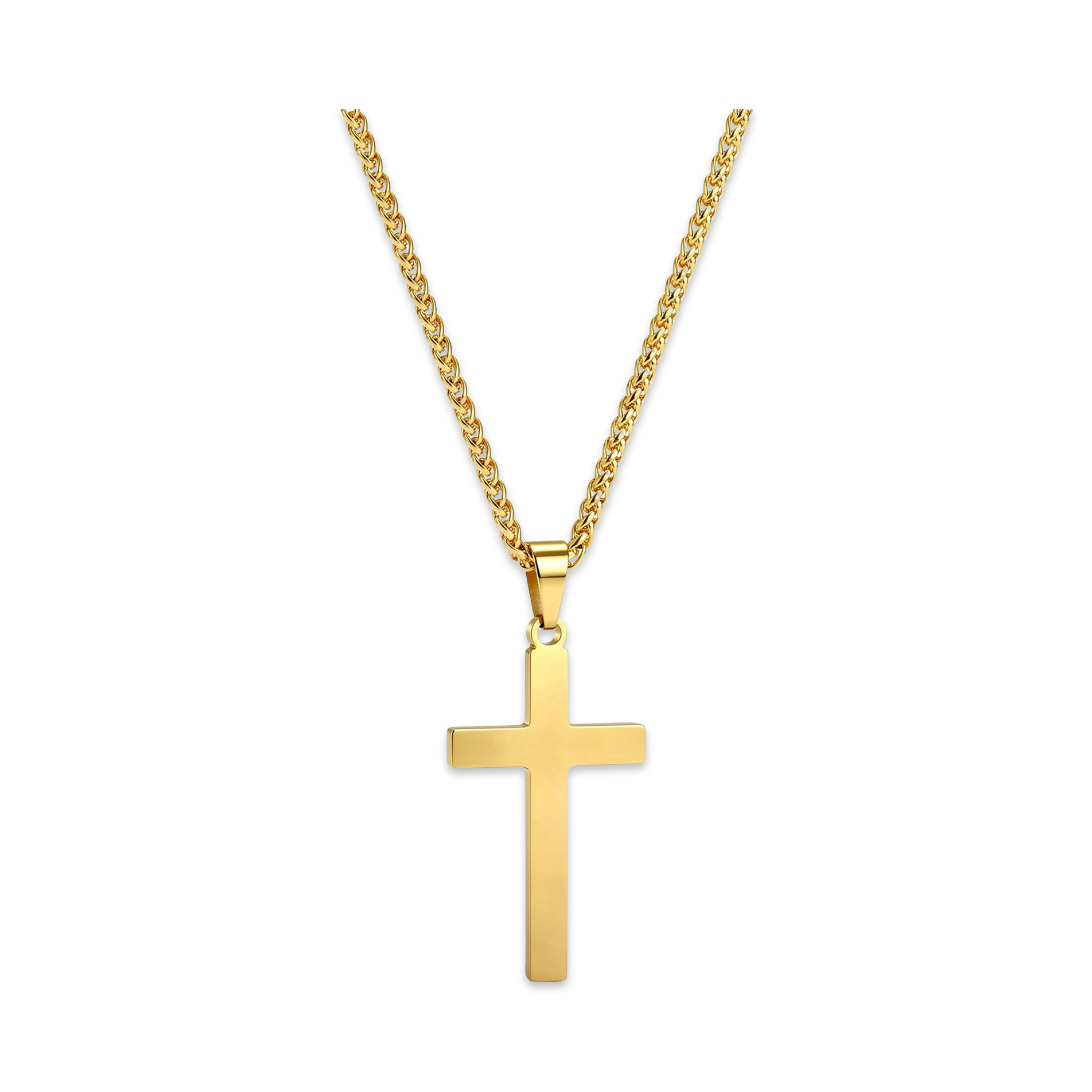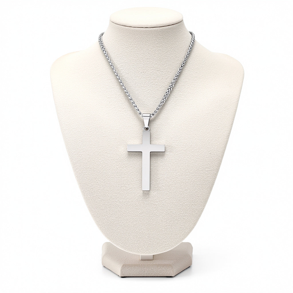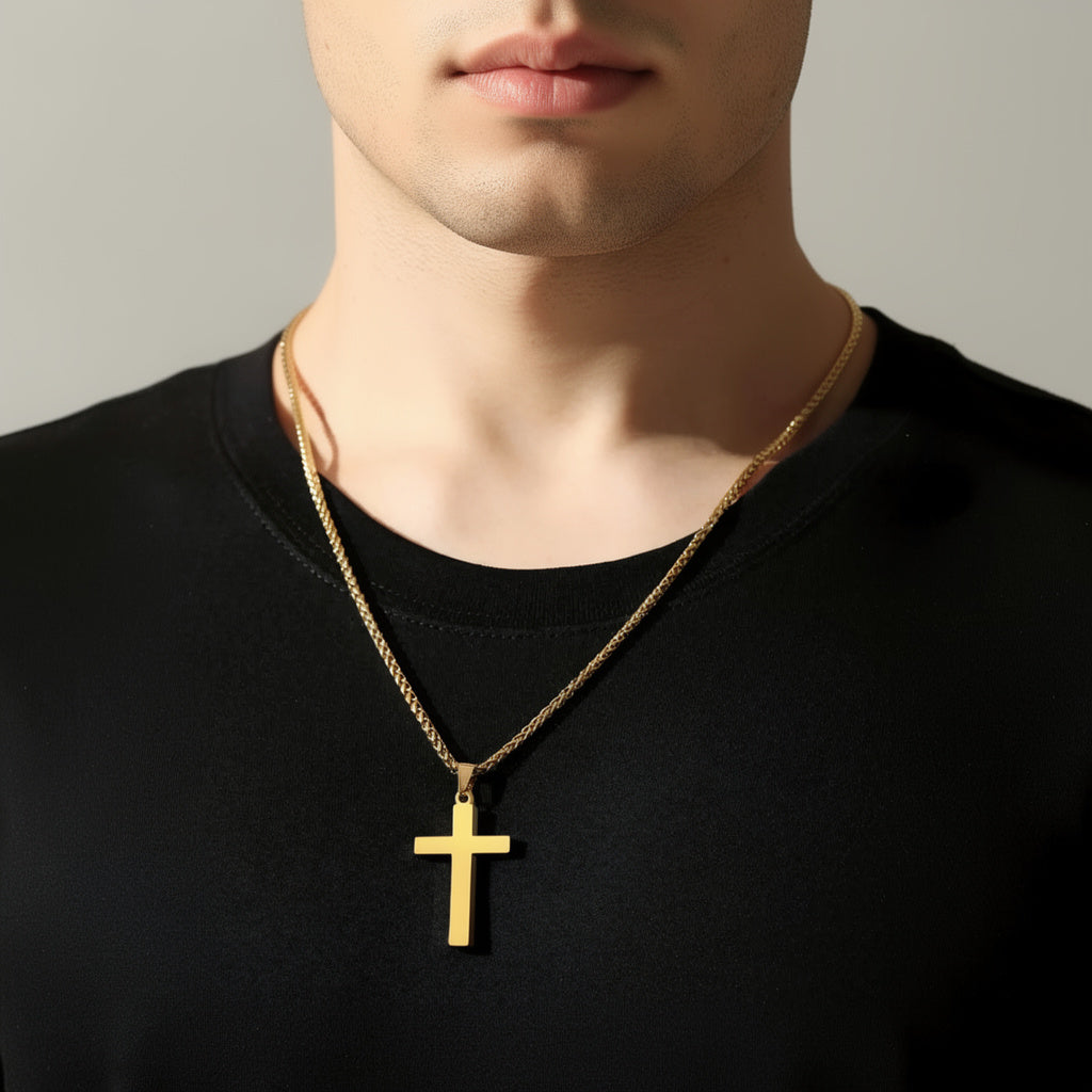 Crafted with precision and purpose, this stainless-steel cross — plated in 18k gold for lasting shine — is waterproof and tarnish-proof, designed to endure through every season of life. Its bold, masculine form makes it perfect for everyday wear, reminding you that your courage flows from the One who goes with you. Our Fearless Strength Chain is 23 inches in length.