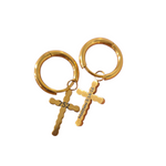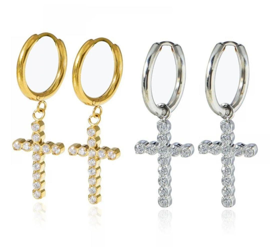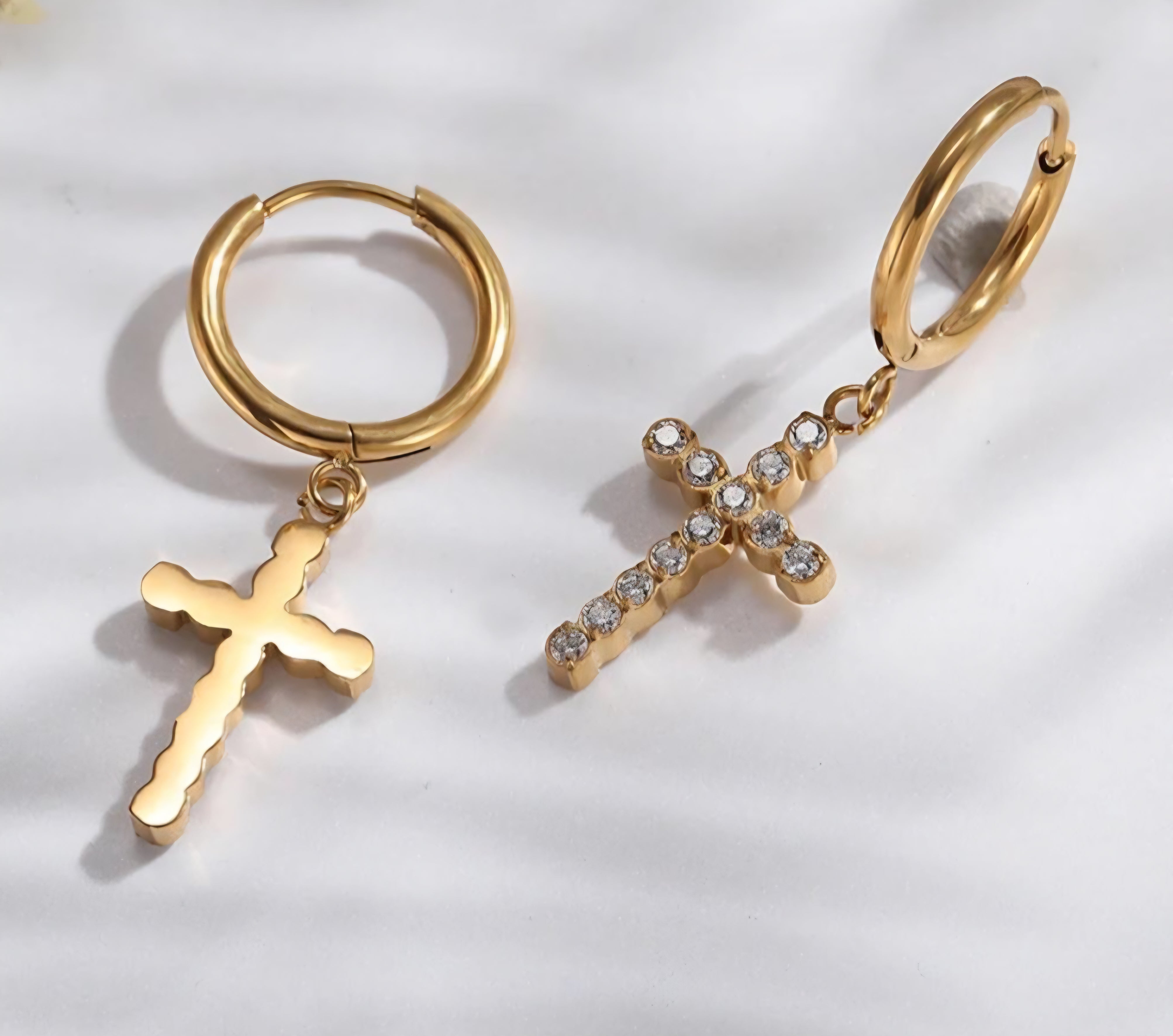 Their circular form speaks of eternity, the unending love and faithfulness of God, while the cross at their heart declares the triumph of redemption. Every glimmer from these earrings reflects the light of Christ that now dwells within you, calling you to shine with courage, compassion, and unwavering hope.