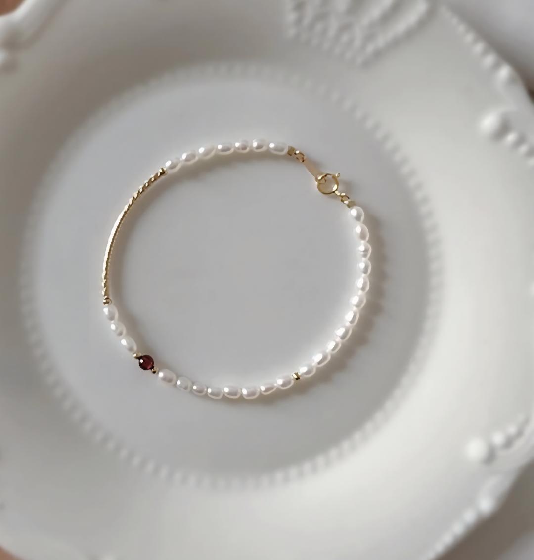 Crafted from luminous pearls and accented with a deep purple bead, this elegant bracelet is designed for daily wear, a beautiful, durable piece to carry this truth with you.