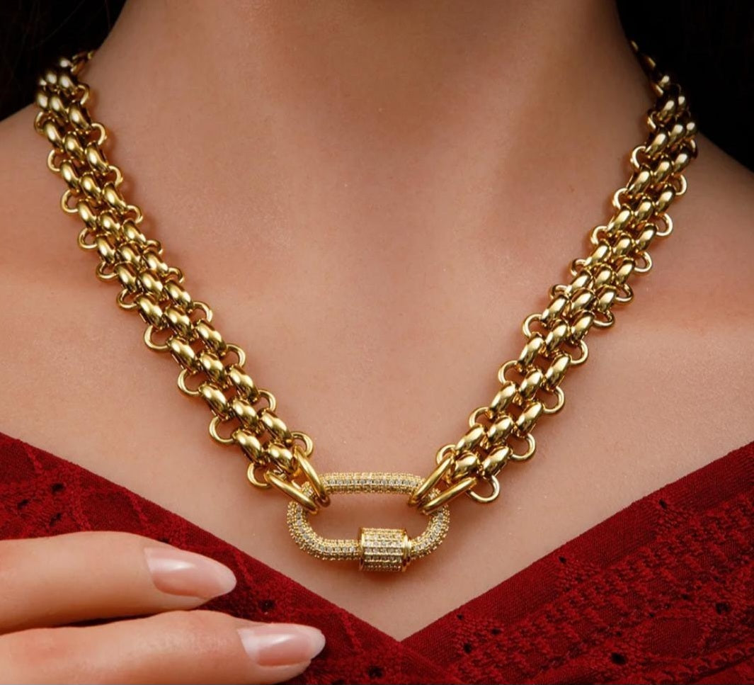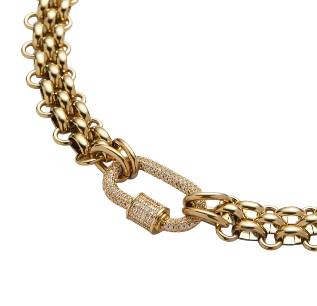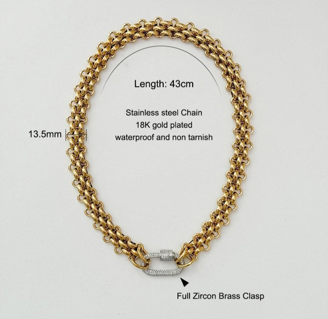 This trendy, chunky gold chain is crafted from high-quality stainless steel and plated in 18k gold for a long-lasting, radiant finish. Its bold, rhinestone-encrusted clasp adds a modern, sparkling touch, making it perfect for daily wear or special occasions. Tarnish-proof and waterproof, this chain blends fashion-forward style with deep spiritual meaning, letting your faith shine wherever you go.
