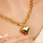 This beautiful large gold heart pendant necklace is crafted from high-quality stainless steel and plated with 18k gold, offering a radiant, luxurious finish that endures. It is tarnish-proof and waterproof, making it a durable and meaningful accessory for everyday wear—one that carries deep spiritual significance while remaining elegant and timeless.