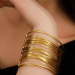 Crafted in 18k gold plating the Secretly Woven Bangle captures the beauty of what is both hidden and revealed, a reflection of the radiant life that flows from a heart fully known by God.