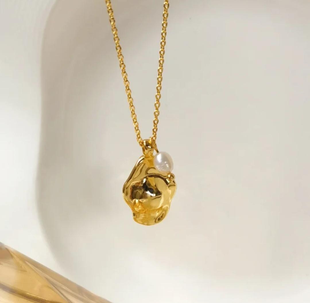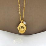 This necklace is a reminder that because Jesus lives, we also have eternal life. The gold stone-like pendant represents the stone that was rolled away, while the pearl symbolizes the purity and newness we receive through Him.